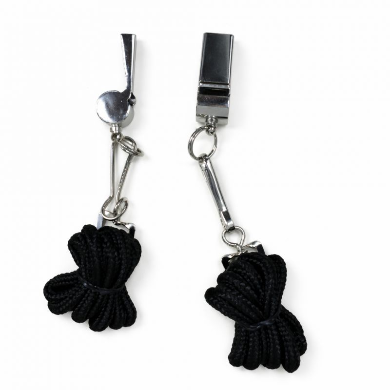Fluier metalic, prevazut cu snur.