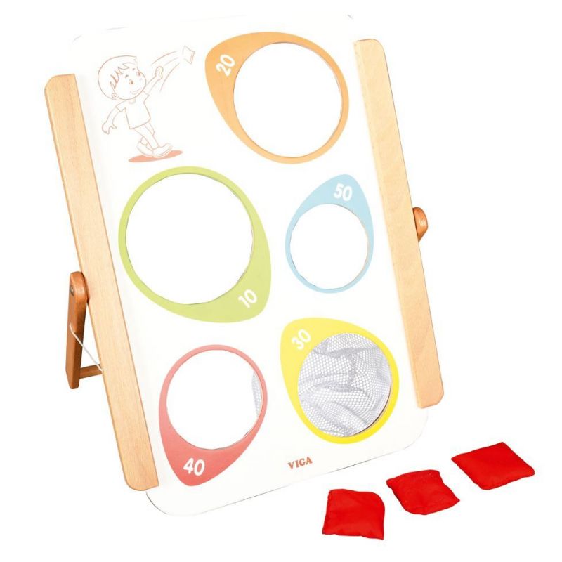 Joc de precizie in care trebuie sa nimeresti una din gaurile tintei cu ajutorul saculetilor de nisip. Panoul dispune de 5 gauri cu diametru intre 8,2 si 12 cm, dimensiune totala tinta 35 x 25 x 40 cm.