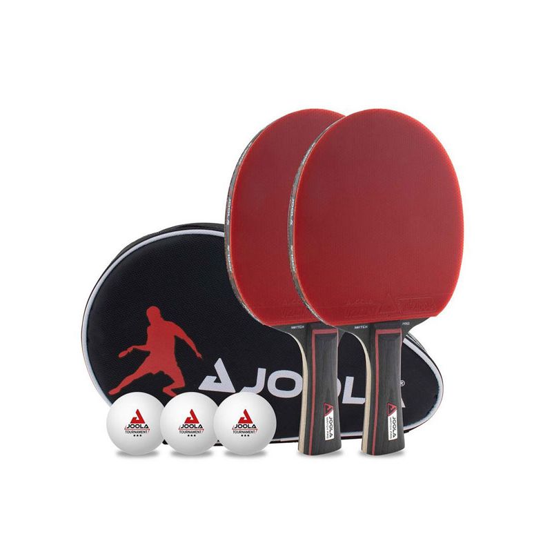 Setul de tenis de masă JOOLA DUO PRO, continedin doua palete de tenis de masa JOOLA MATCH PRO, trei mingi de tenis de masă JOOLA Tournament*** și o geanta practica pentru a stoca totul. e